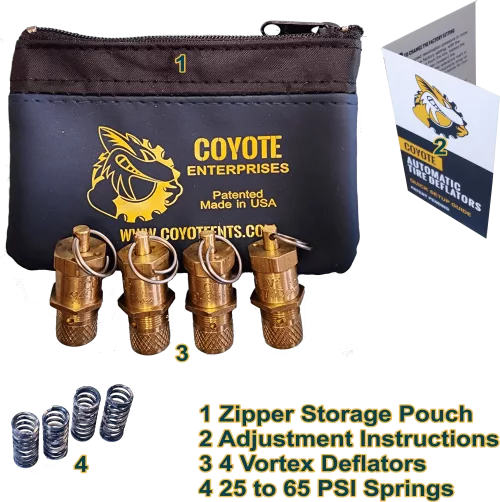 Off-road terrain can vary from sand to surf, rocks to boulders and more, including extremes in weather. These challenging trail conditions can be improved by changes in tire pressure. Coyote Automatic Tire Deflators quickly and accurately air down tires when there’s a need for improved traction, and control.